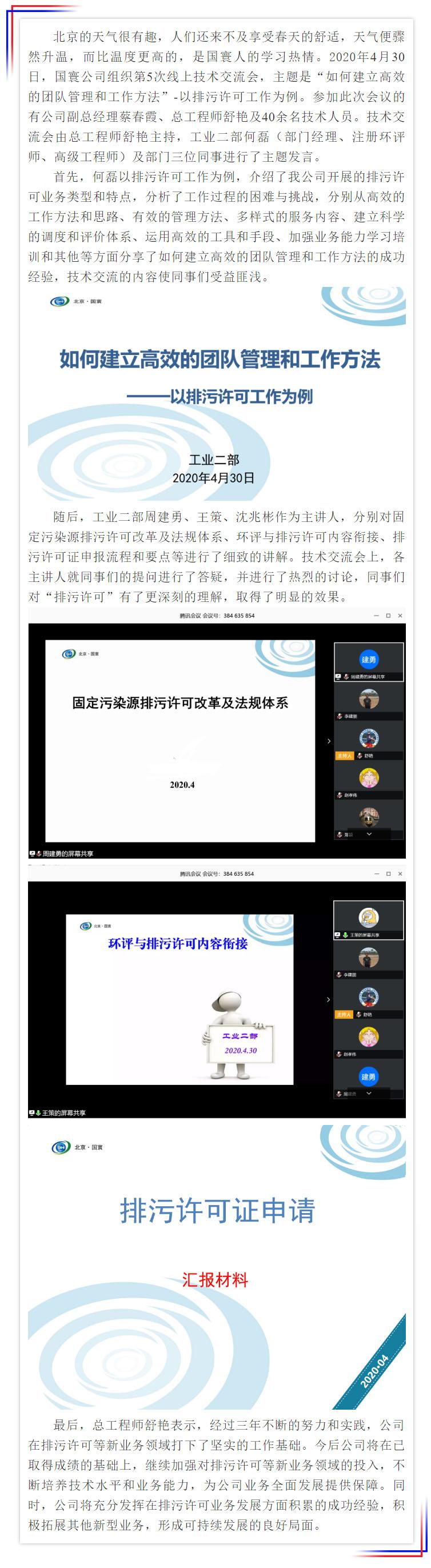 疫情將去,曙光在即!國寰公司組織技術交流會-“如何建立高效的團隊管理和工作方法”-以排污許可工作為例