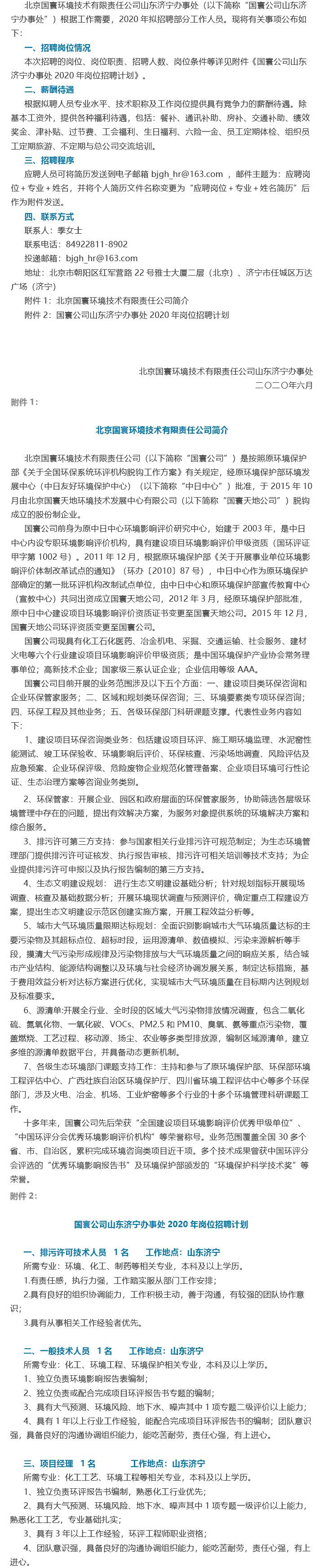 北京國(guó)寰環(huán)境技術(shù)有限責(zé)任公司山東濟(jì)寧辦事處招聘啟事