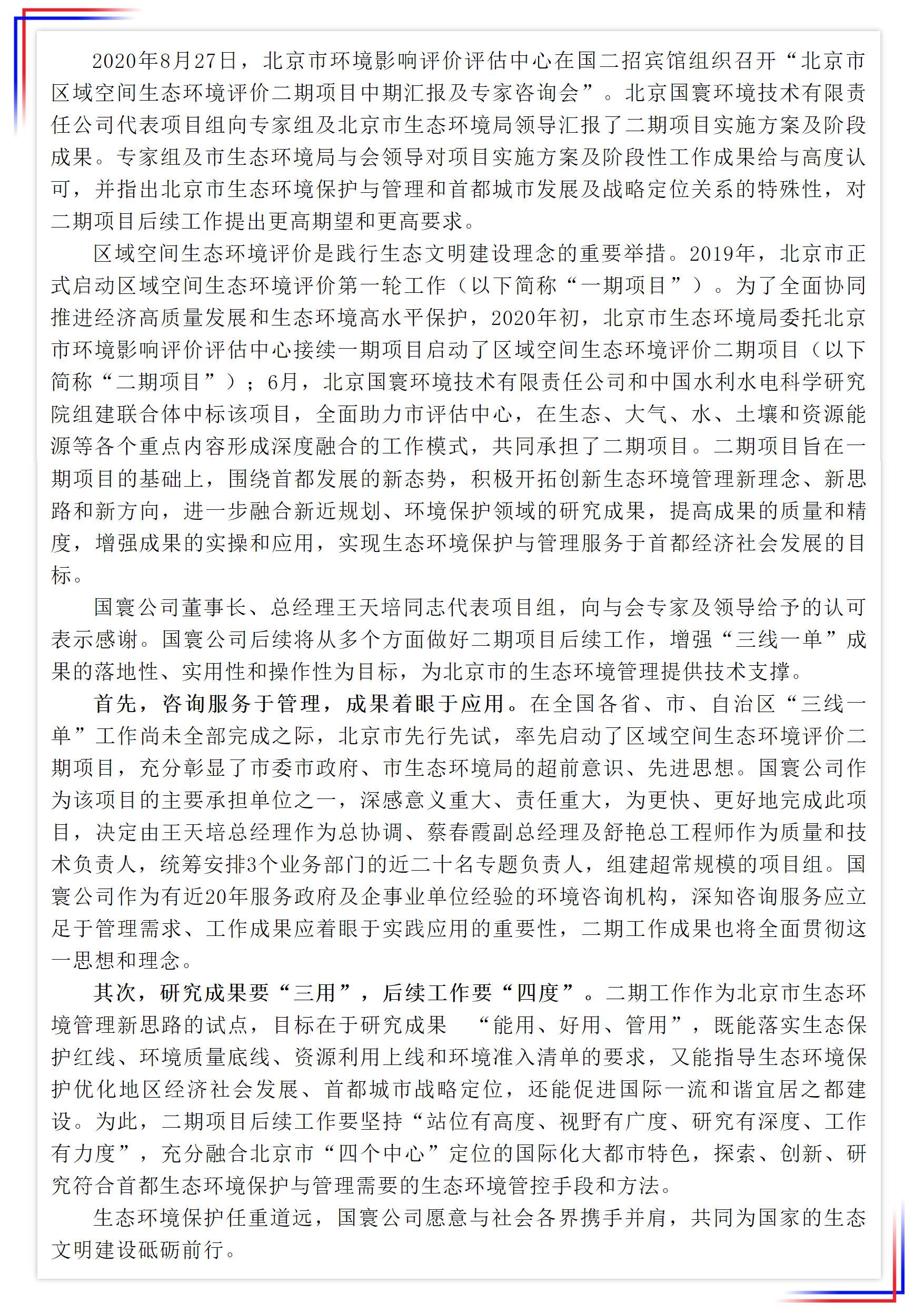 全面圍繞首都發(fā)展新態(tài)勢,全力服務環(huán)境管理新理念——北京市區(qū)域空間生態(tài)環(huán)境評價二期項目中期匯報及專家咨詢會順利召開