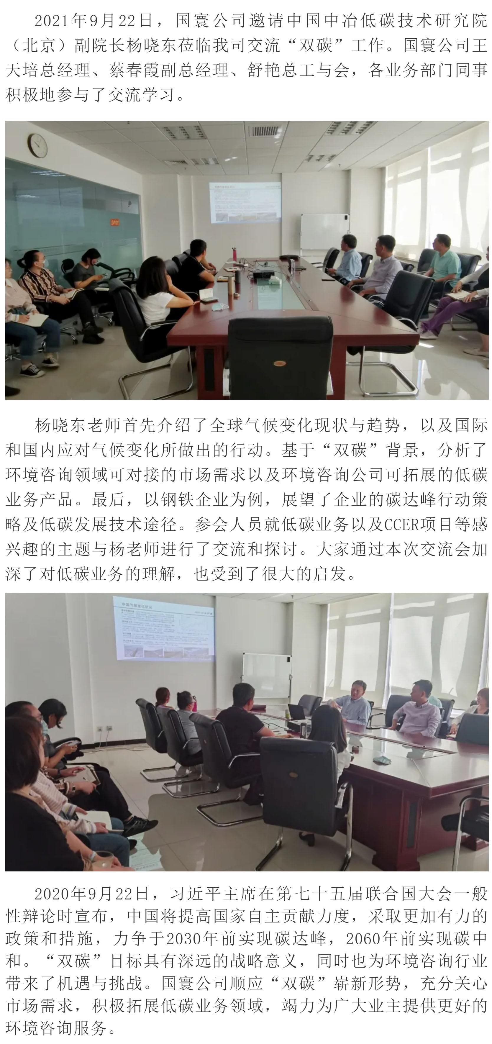 中國中冶低碳研究院(北京)副院長楊曉東蒞臨國寰公司指導(dǎo)交流“雙碳”工作