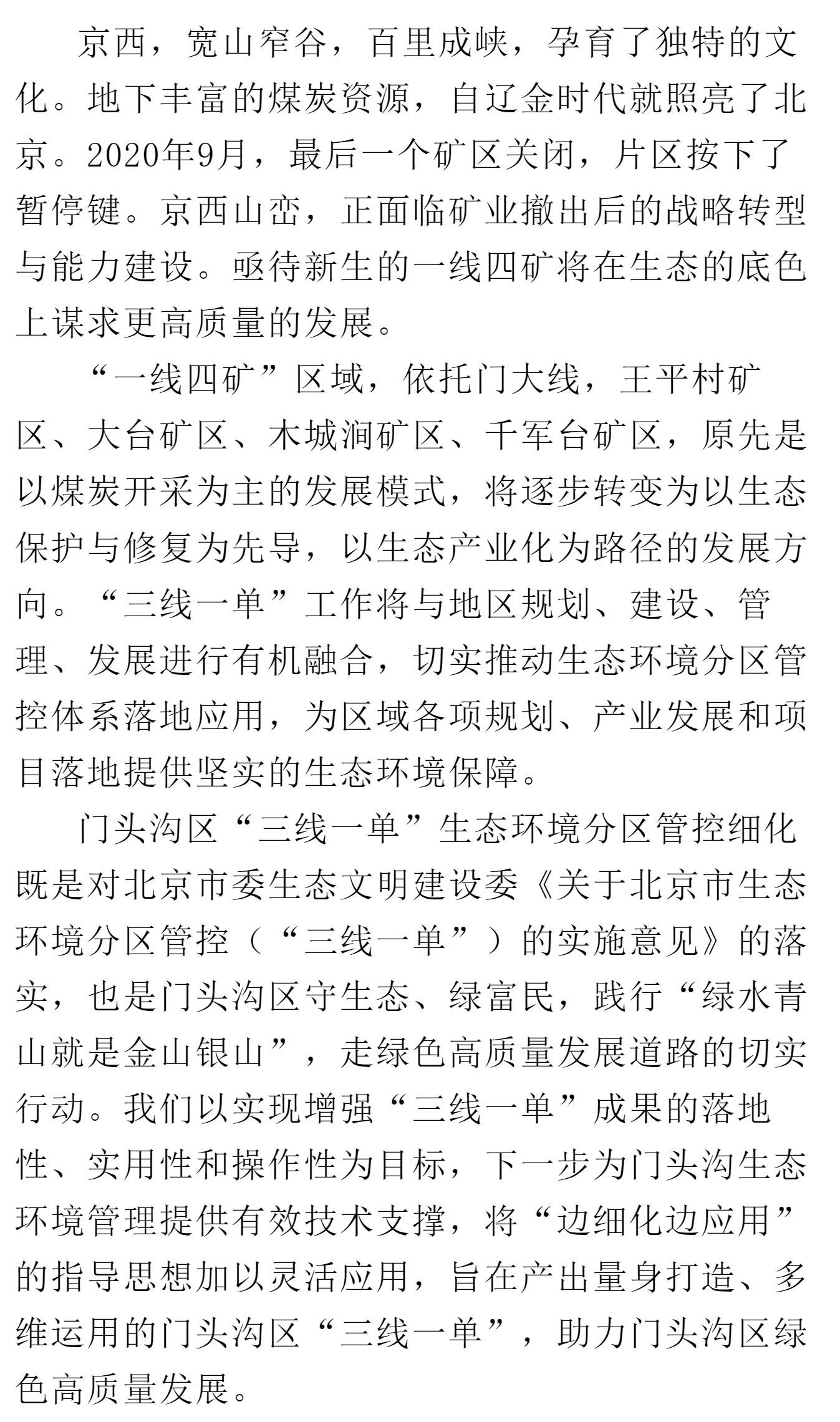 京西一線(xiàn)四礦,生態(tài)底色上謀求更高質(zhì)量發(fā)展——我們?yōu)殚T(mén)頭溝區(qū) “三線(xiàn)一單”量身打造,支撐地區(qū)高質(zhì)量發(fā)展