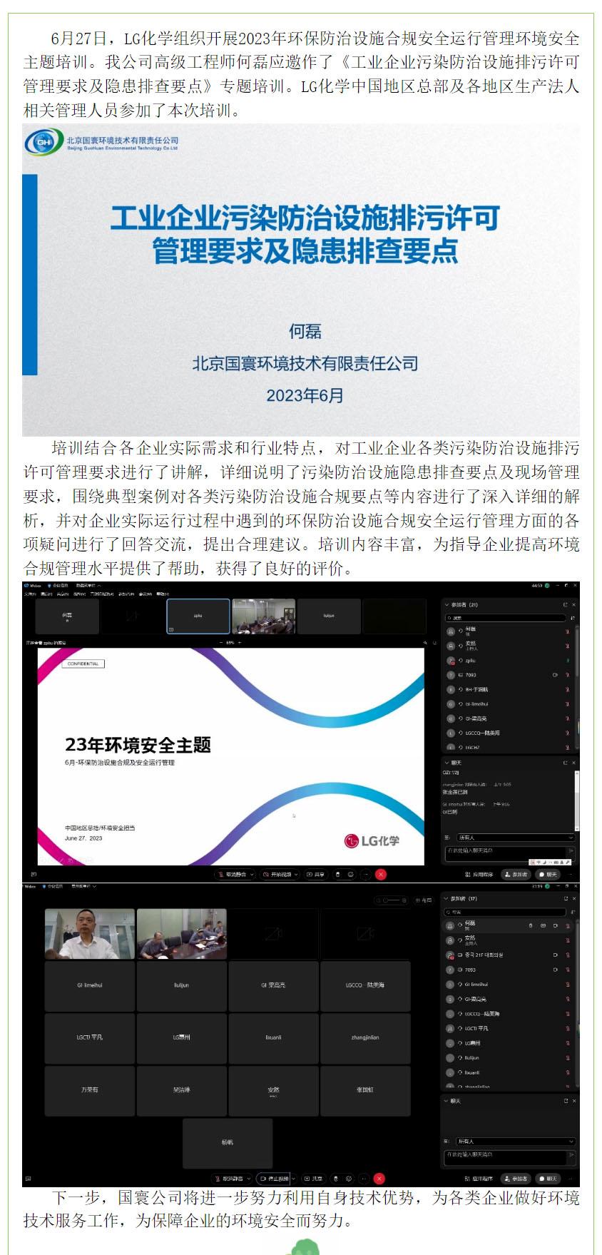 國寰公司應邀為LG化學開展環境合規運行管理專題培訓