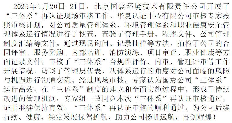 國寰公司順利通過“三體系”再認證審核工作